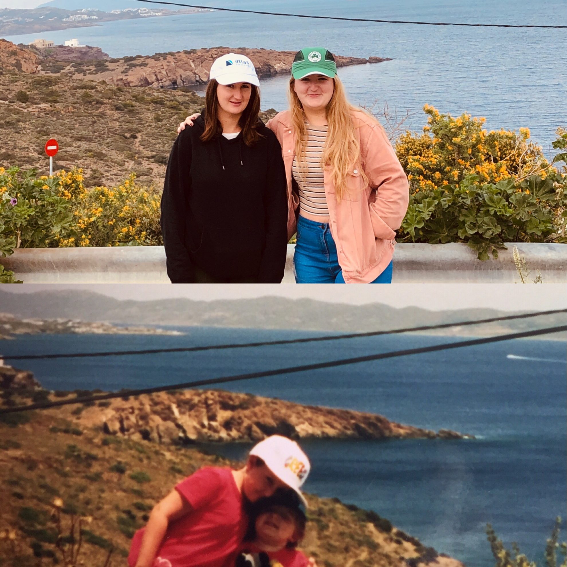 This week I finally got to retake a photo that was first taken, give or take a few weeks, 20 years ago. It was of my daughters near the Temple of Poseidon at Cape Sounion in Greece.